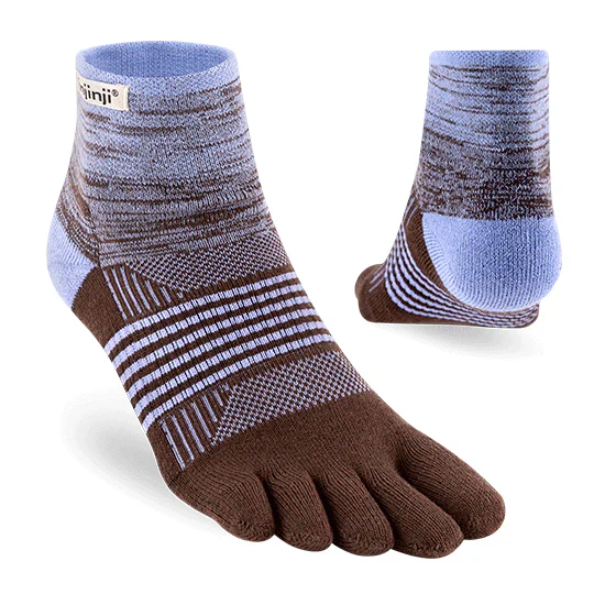 Hitting the trails has never been more fun than with a pair of Injinji Trail socks. Trail runners, ultra-runners and outdoor adventurers can count on the Injinji Trail sock to keep them on the go. All Injinji Trail socks are durable and dependable with a midweight, thick cushioned foot bed to help handle uneven terrain. Injinji Trail socks are available in a Mini-Crew length, which features a double cuff to keep dirt & debris out. Like all Injinji socks, the Trail socks provide excellent moisture management, prevent blisters and total foot utilization. Go ahead and try the Injinji Trail sock - the trails are awaiting!